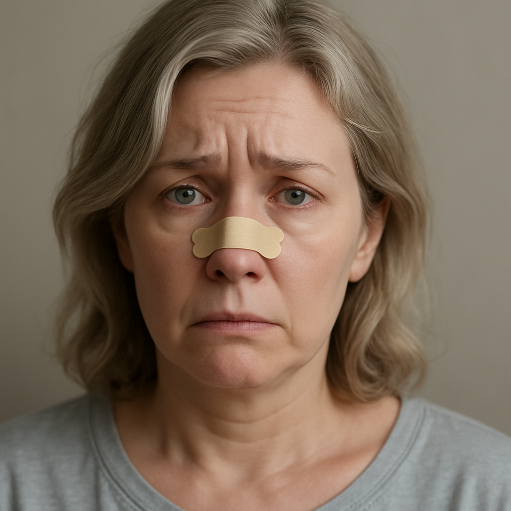 Nose strips? Your problem isn't in your nose. It's in your throat where estrogen loss caused the collapse.